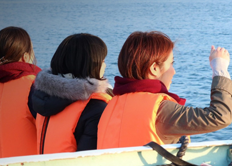 ウミネコへの餌付けや、漁船の水槽で泳ぐ魚の購入など、他の観光船では見られない個性的なサービスも自慢だ。
