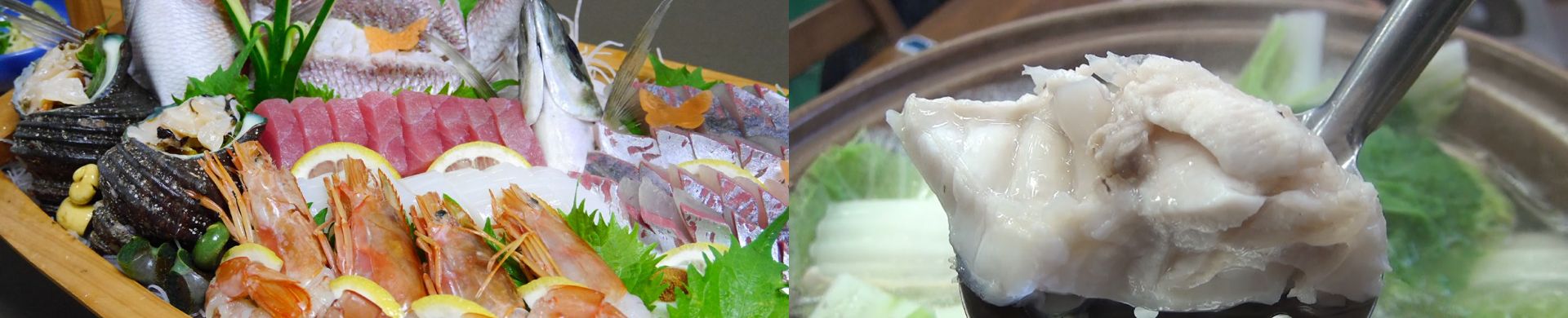 日高で名物料理の「クエ鍋」や「タイ鍋」「ハモしゃぶしゃ」のほか、